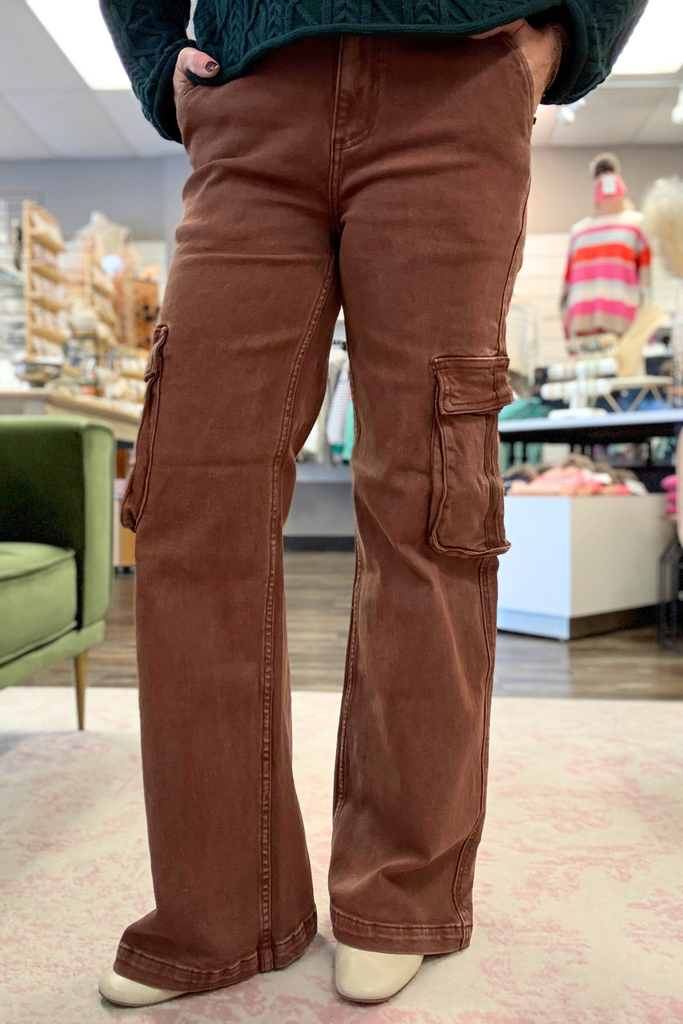 Rise 10 1/2" | Inseam 32"Customer favorite Risen brand cargo pants! These pants have a rich brown color that makes them perfect for all your fall outfits!