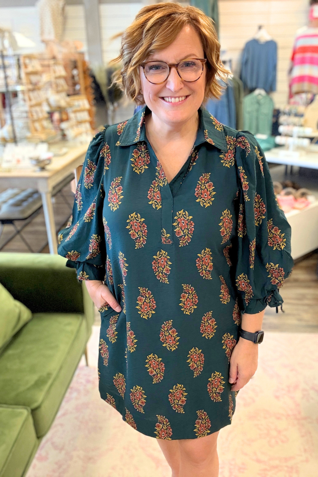 Embrace the season in this stunning hunter green tie sleeve dress, a versatile piece that transitions effortlessly from day to evening. The rich jewel tone flatters every complexion, while the charming tie sleeves add a touch of elegance and movement. It has a cinch tie in the back to adjust for your perfect fit. Perfect for fall gatherings, date nights, or elevated casual outings, this dress combines timeless style with modern appeal. The sophisticated silhouette ensures you'll feel confident and beautiful no matter the occasion.