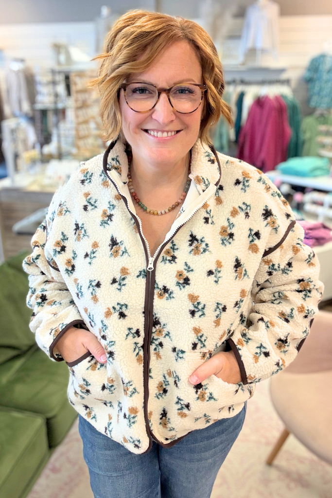 Floral Printed Fleece Sherpa Jacket