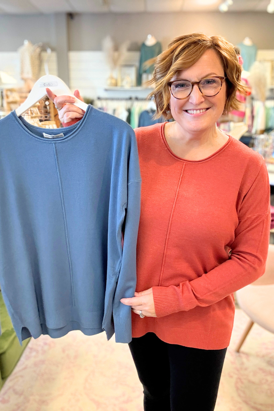This Viscose Front Seam Round Neck Sweater features distinctive seam detailing that adds subtle style to your outfit. Its style creates a flattering, relaxed silhouette, combining comfort with modern design.
