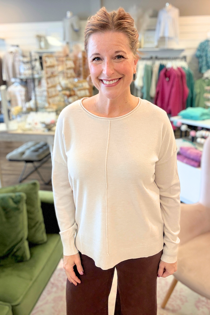 This Viscose Front Seam Round Neck Sweater features distinctive seam detailing that adds subtle style to your outfit. Its style creates a flattering, relaxed silhouette, combining comfort with modern design.