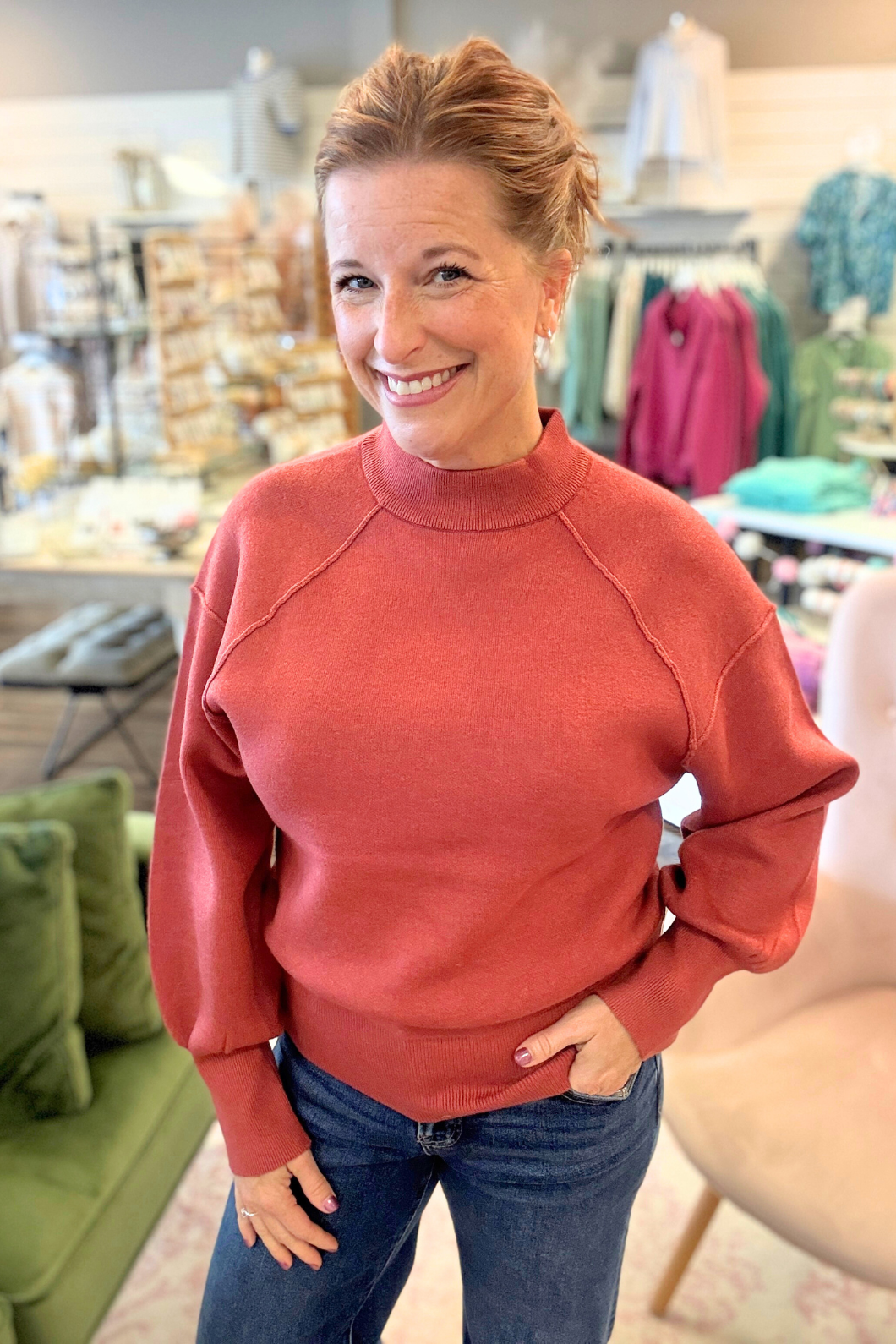 Viscose Mock Neck Exposed Seam Sweater